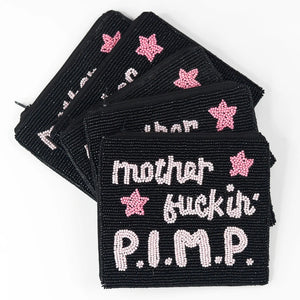 Individually crafted from delicate seed beads, the Mugsby Designs Mother F*ckin' Pimp Bag features a luxurious zipper closure and a satin-lined interior for a truly premium experience. The sleek satin fabric on the back and inner lining complements the design of this unique bag.