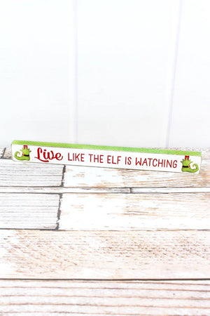 "Live Like The Elf Is Watching" Spread Christmas cheer throughout your home with this long block sign. 1.5" Tall x 14.5" Wide x .75" Deep Composite Wood Construction Paper Artwork Design Freestanding
